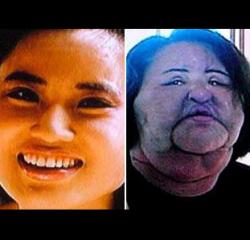 Le résultat est catastrophique. La pauvre femme est complètement défigurée.